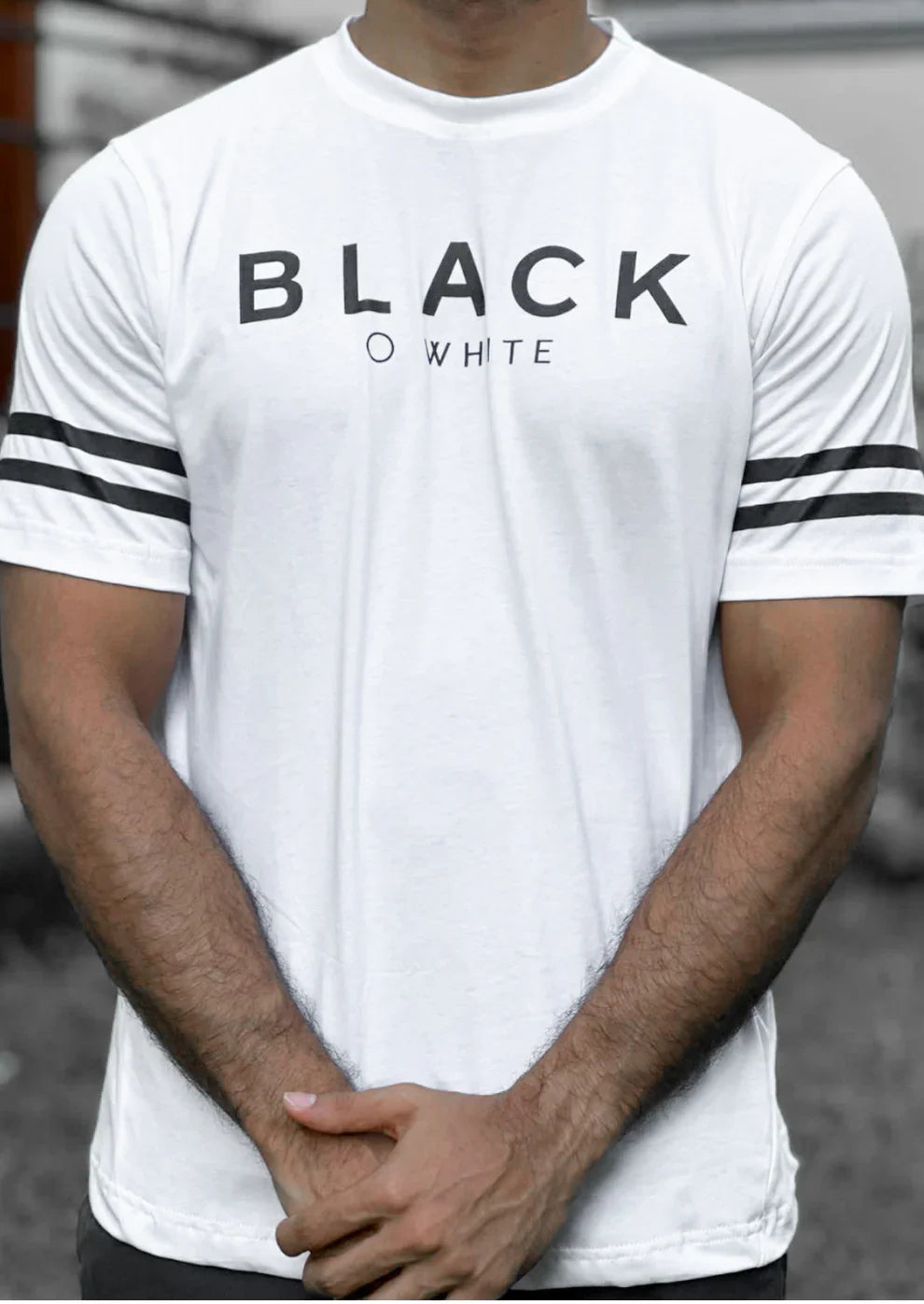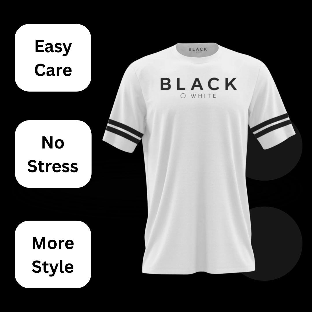 With its oversized/relaxed silhouette, this tee gives you freedom — freedom to move, to breathe, to feel like yourself without restriction. The crew neckline brings a timeless structure, while the two bold stripes on the sleeves and the signature Black O White chest logo in premium rubber print anchor it in unmistakable streetwear authenticity.